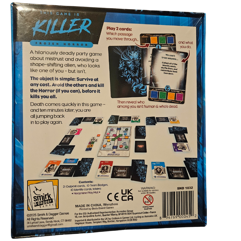 This Game Is KILLER is a second in our line of hilariously deadly party games. This time you are trapped in an arctic outpost with a Horror that can mimic any life form. No one trusts anyone anymore. The object is simple: Stay away from everyone else and Stay Alive! Survive at any cost — and kill the Horror by figuring out who among you isn’t Human this round.