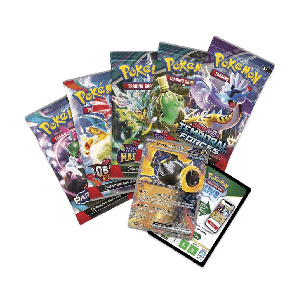 Traverse the hills, waters, and sky of the Paldea region with a Legendary Pokémon by your side! Choose the primal intensity of Koraidon ex boasting a useful Ability and strong attack, and then build up your collection with even more Pokémon and Trainer cards inside a handful of booster packs.