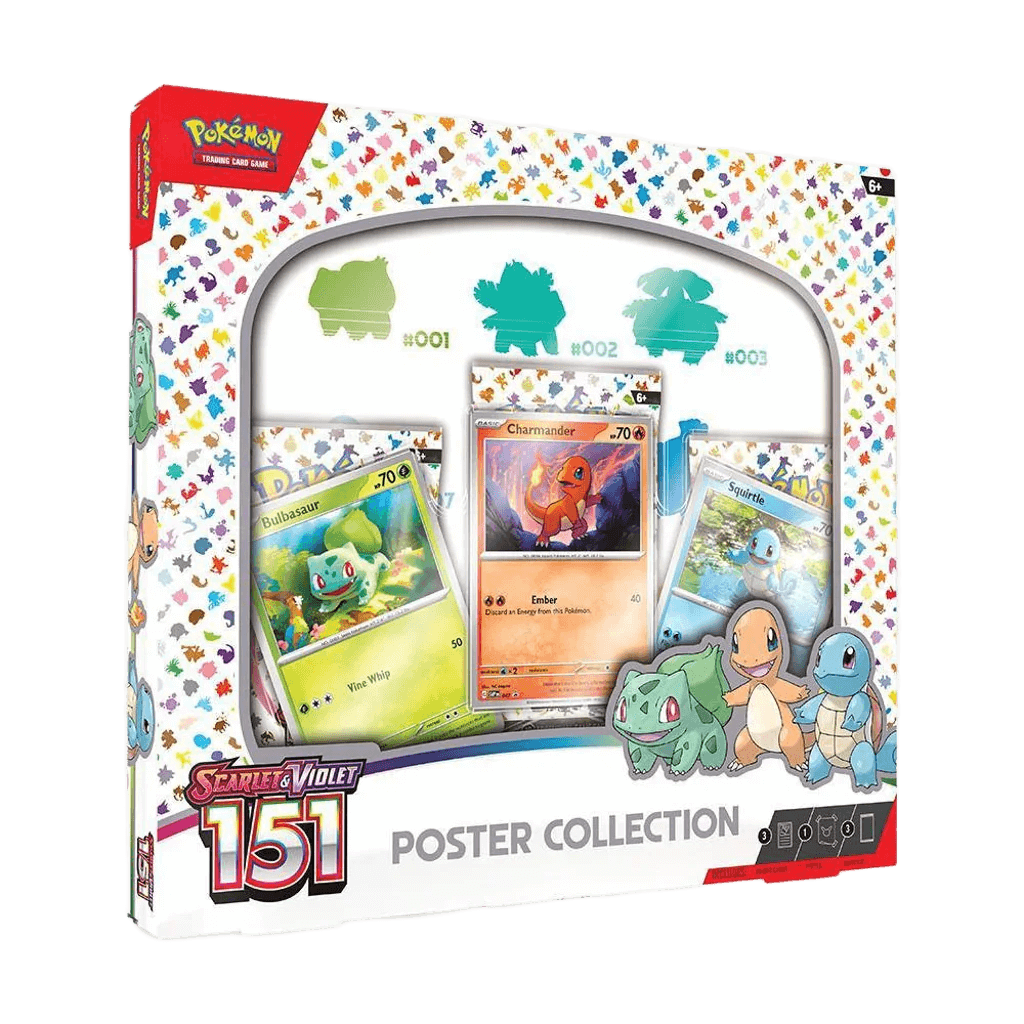 Keywords: Pokémon 151 Poster Collection, Scarlet & Violet 151 cards, Kanto Pokémon set, 151 booster packs, Pokémon TCG poster, Bulbasaur Charmander Squirtle promo, Pokémon collectibles