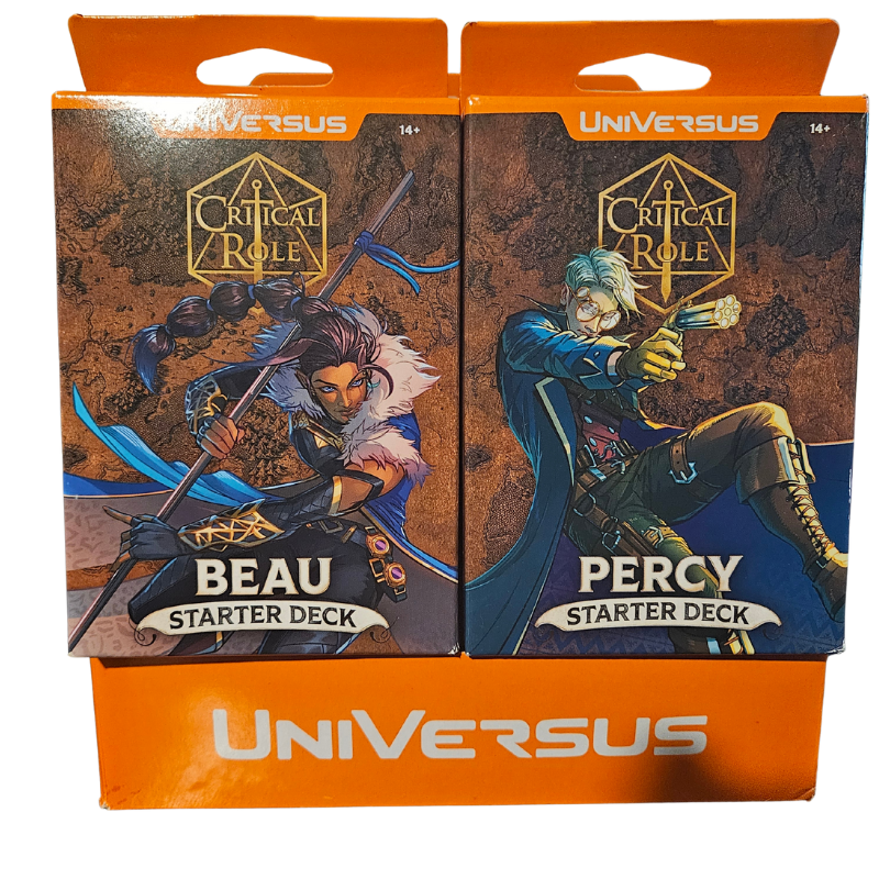 The magic of Critical Role returns to UniVersus with the Heroes of Exandria. Get ready to dive into an adventure of epic proportions with characters you've been eagerly waiting for! Pick your character (Beau or Percy), open the deck, and start playing!
