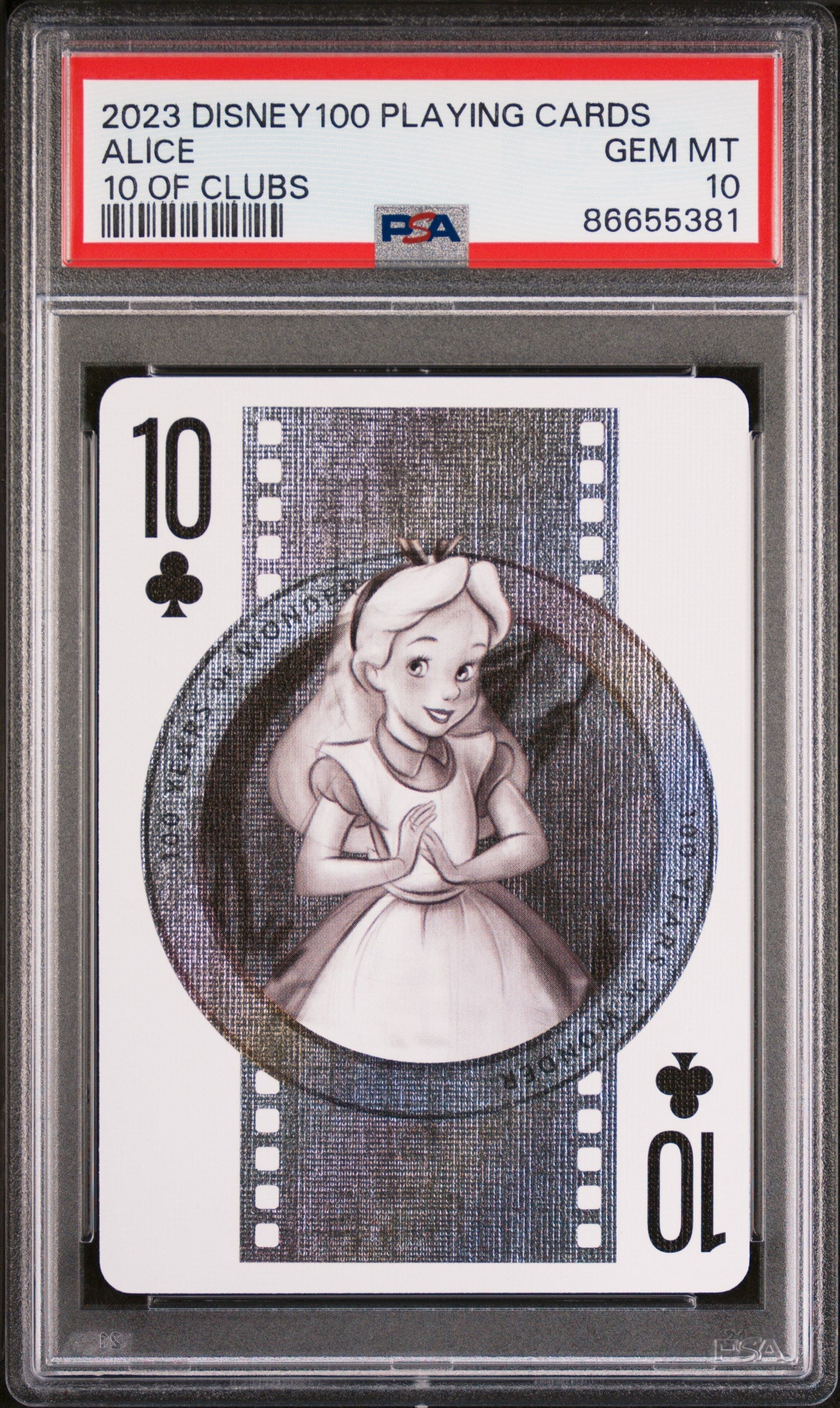 2023 DISNEY 100 PLAYING CARDS ALICE 10 OF CLUBS PSA 10