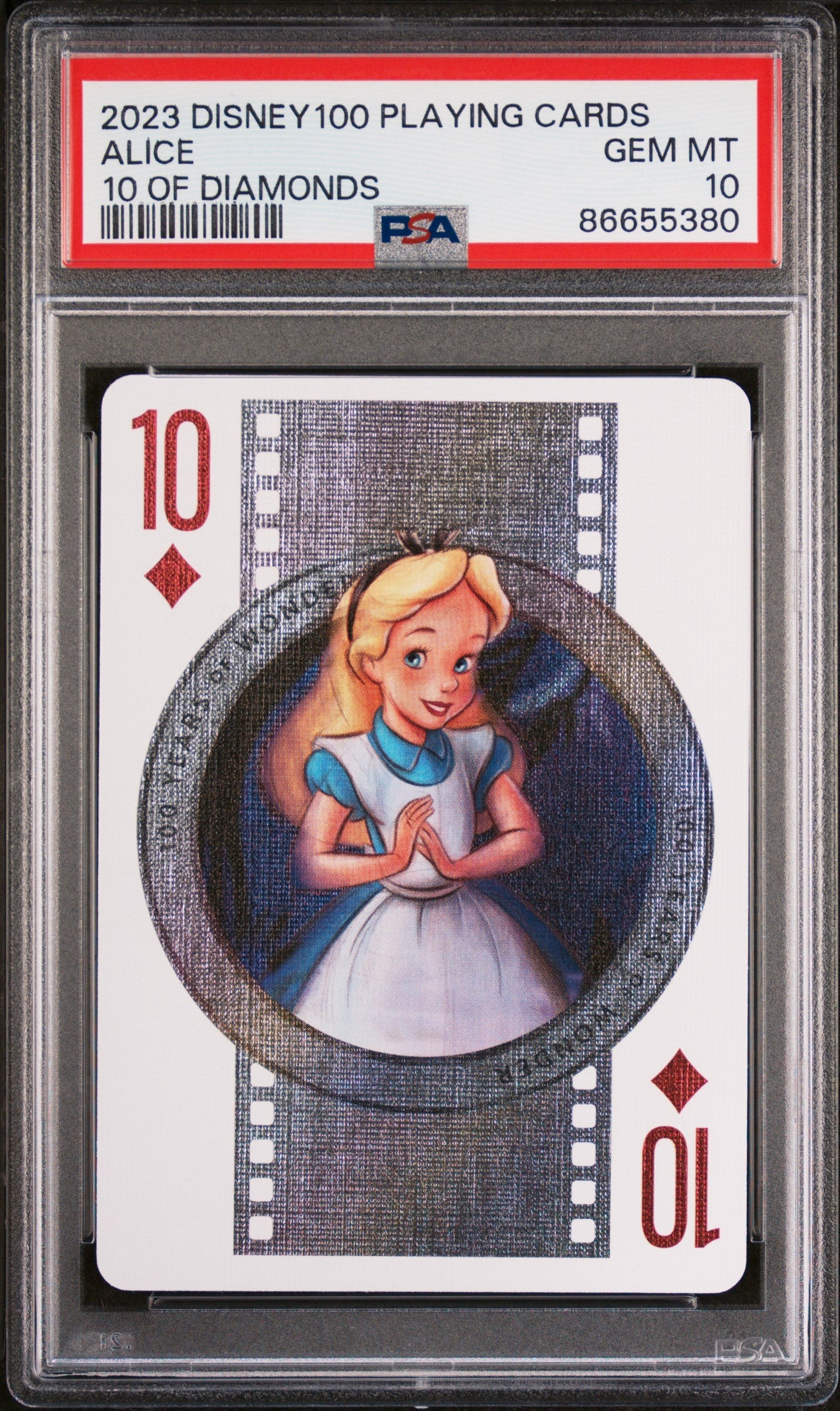 2023 DISNEY 100 PLAYING CARDS ALICE 10 OF DIAMONDS PSA 10
