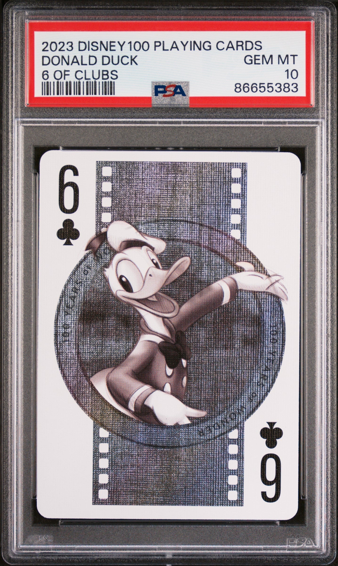 2023 DISNEY 100 PLAYING CARDS DONALD DUCK 6 OF CLUBS PSA 10