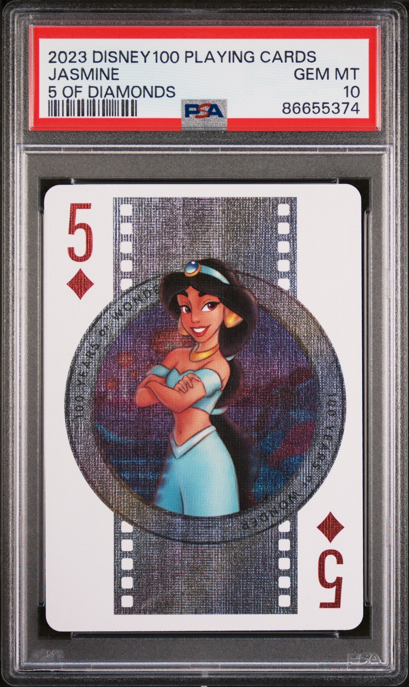 2023 DISNEY 100 PLAYING CARDS JASMINE 5 OF DIAMONDS PSA 10