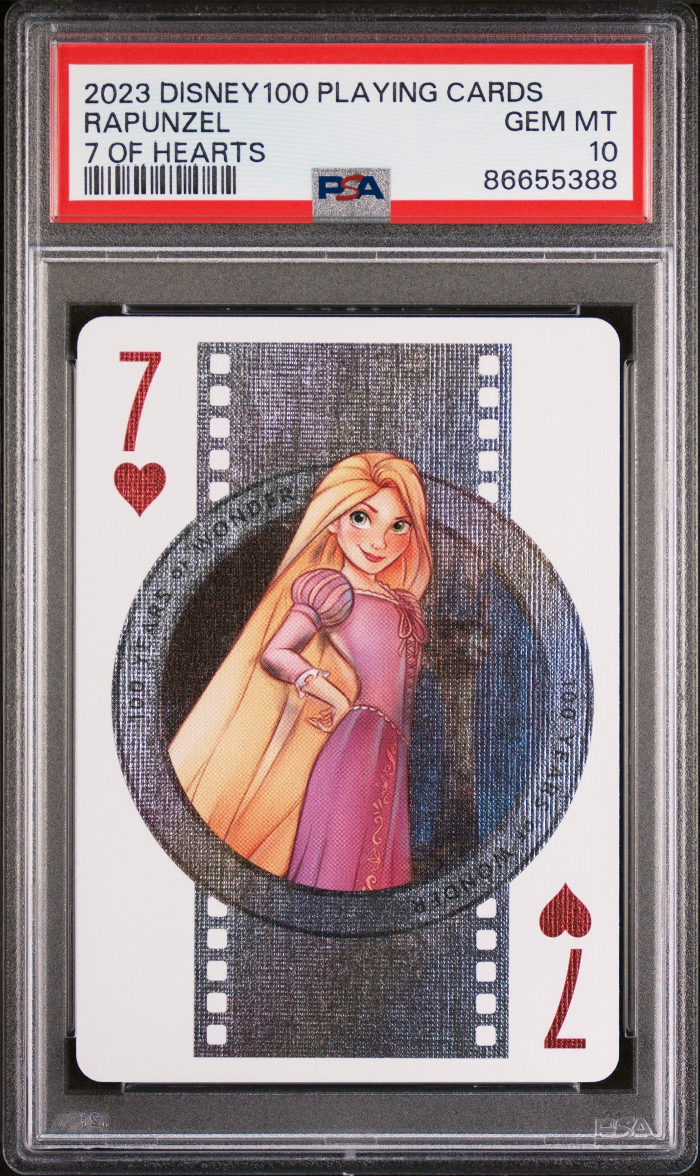 2023 DISNEY 100 PLAYING CARDS RAPUNZEL 7 OF HEARTS PSA 10