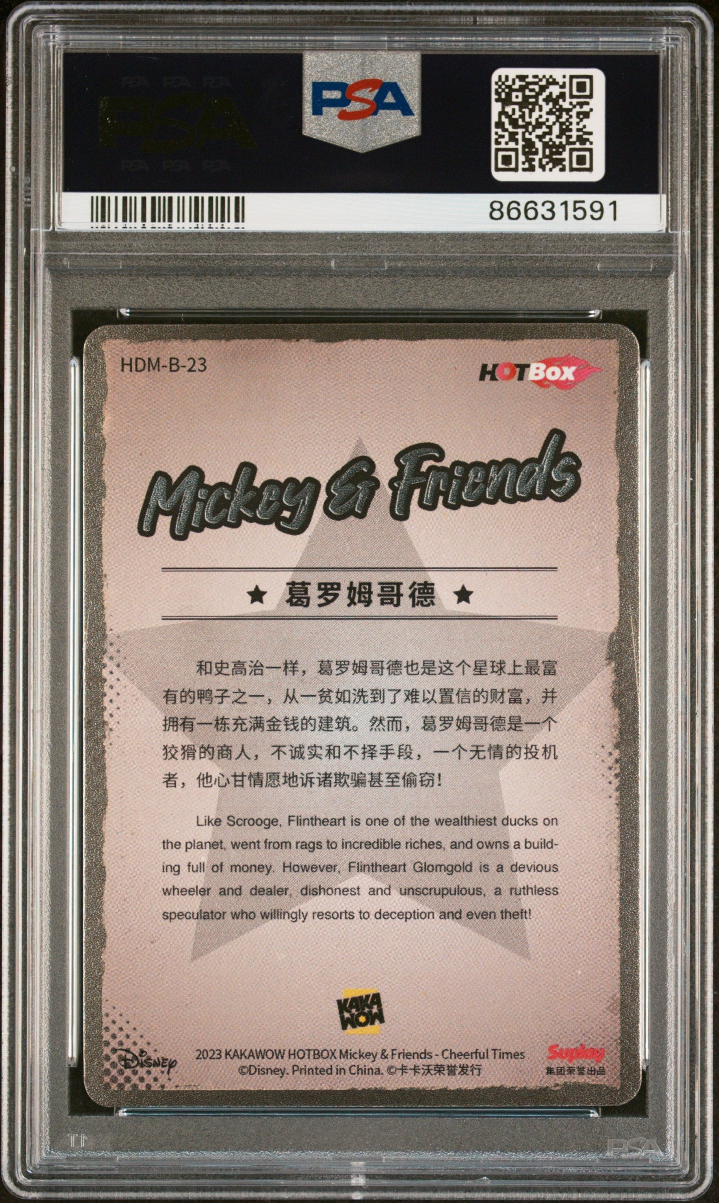 2023 KAKAWOW HOTBOX MICKEY & FRIENDS CHEERFUL TIMES FLINTHEART GLOMGOLD 23 PSA 9
