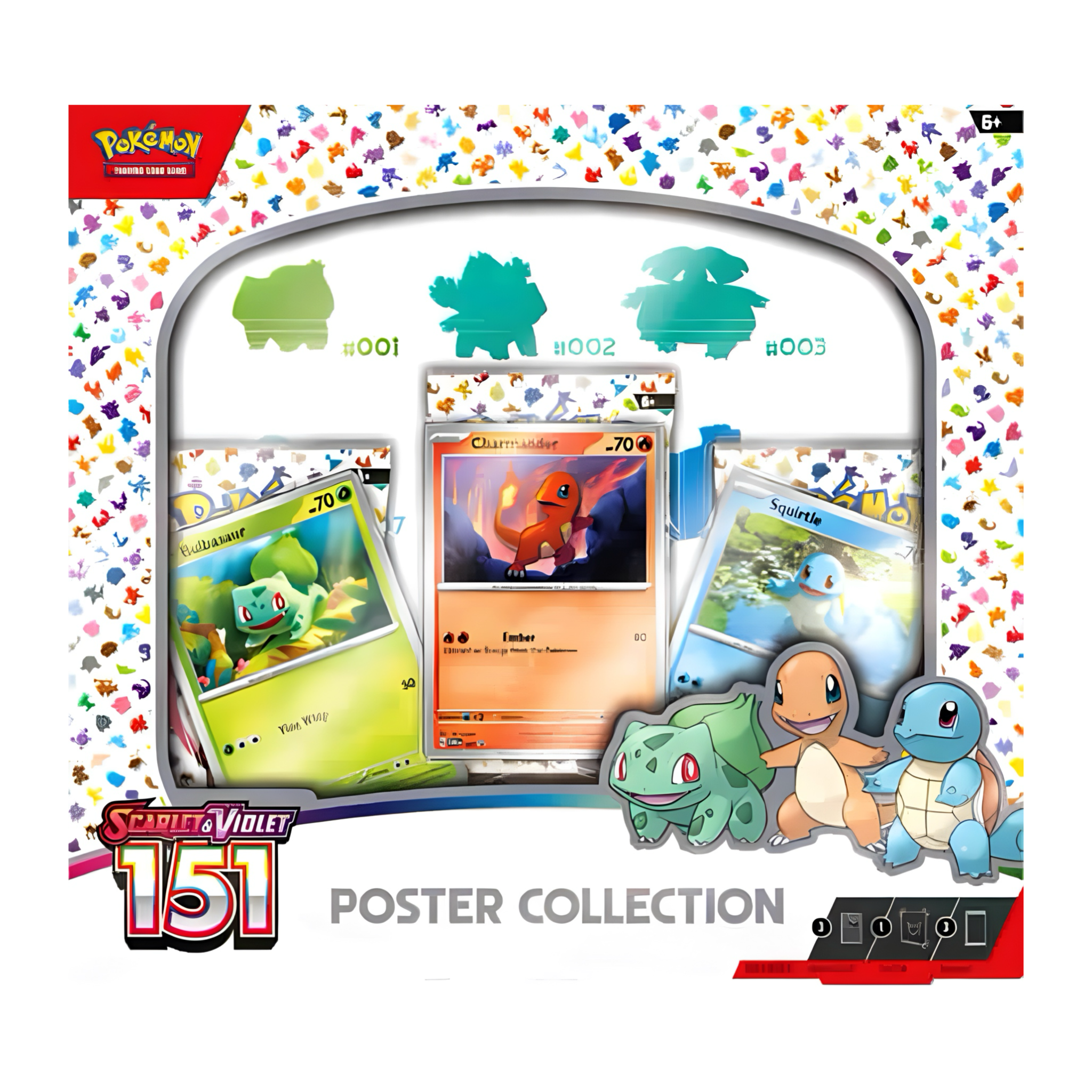 Your Very Own Pokemon Legend Unfolds! An epic journey through the Kanto region wouldn’t be complete without a first partner Pokémon! Add Bulbasaur, Charmander, and Squirtle to your team as playable foil promo cards, then work on completing your Kanto Pokédex by opening more booster packs from the special Scarlet & Violet—151 expansion. On top of it all, you’ll find a colorful poster that’s ready to hang wherever you like!